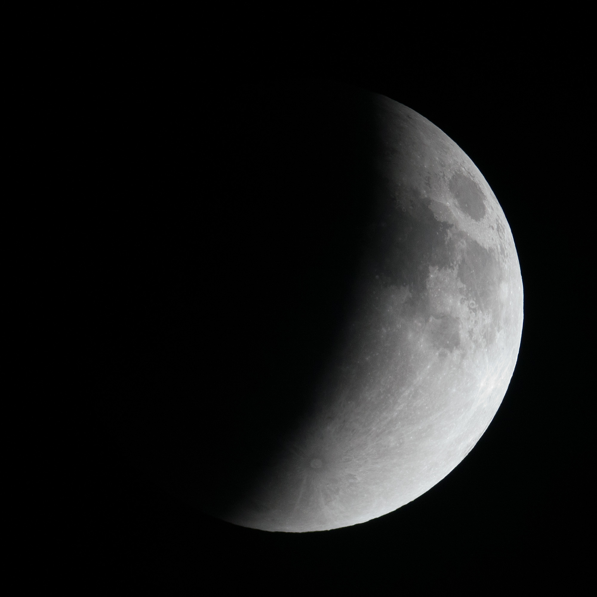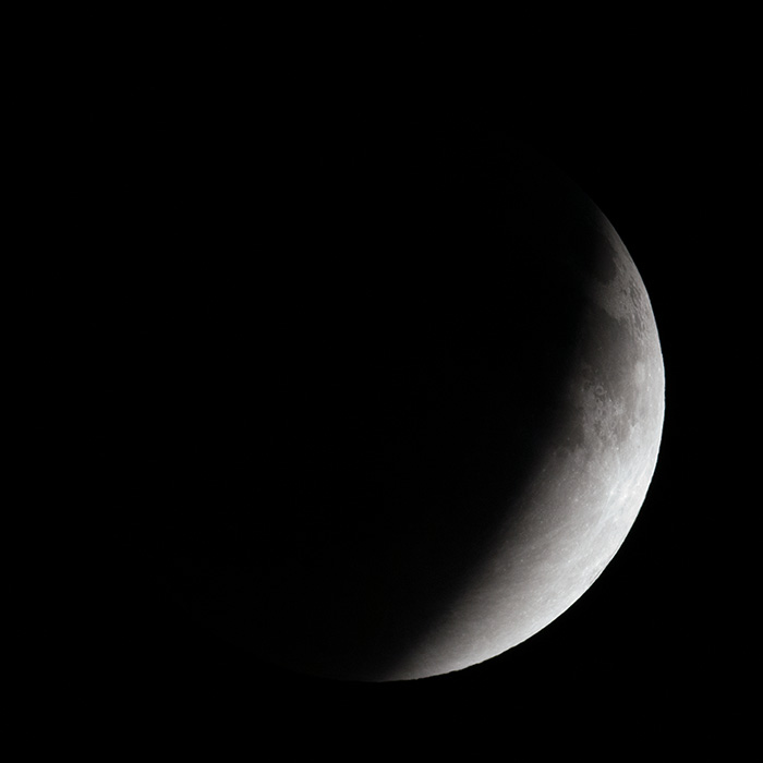 Celestron 102-ED/Great Polaris mount/Nikon D300 Click on the image for a full-resolution version. The shape of the Earth's shadow is apparent in this composite image. Equipment: