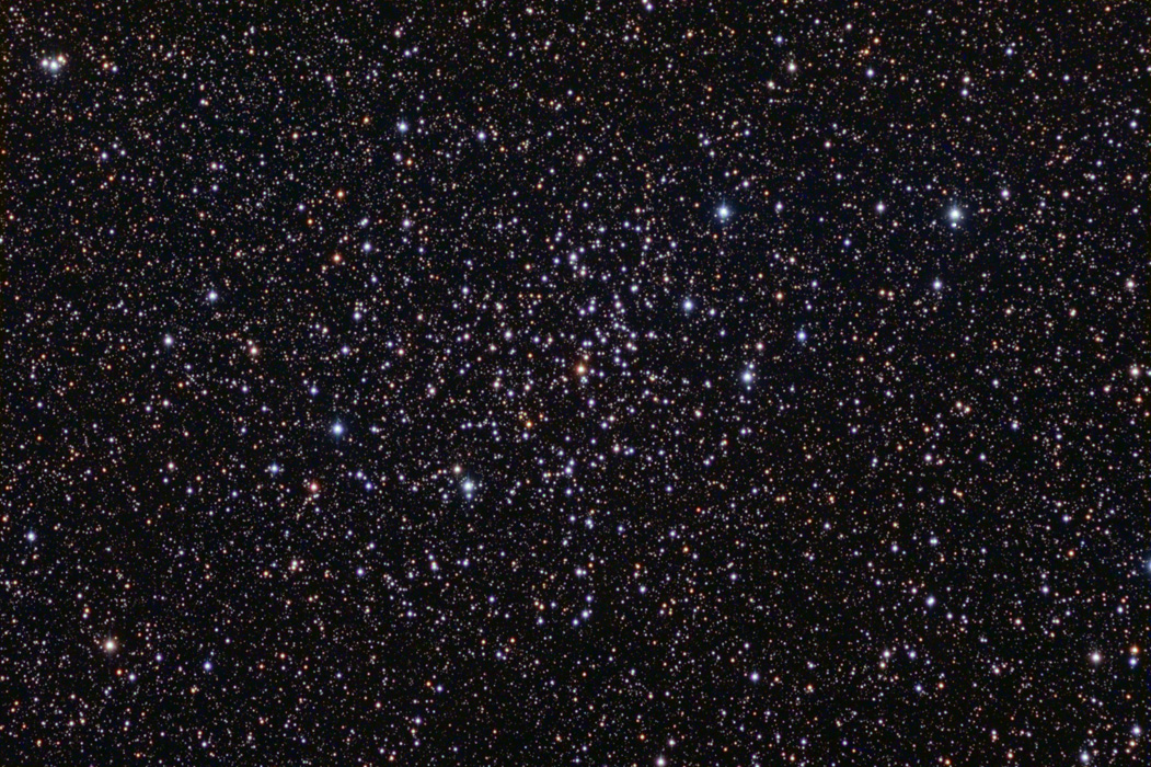 Individual exposures were dithered using CCDAutoPilot2 and then sigma combined. The RGB image was created in Registar 1.0. Gaussian Blur of 1 pixel was applied to the RGB image.
